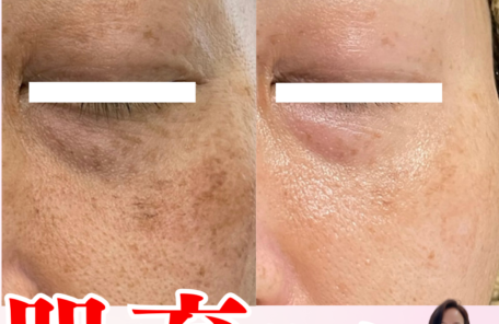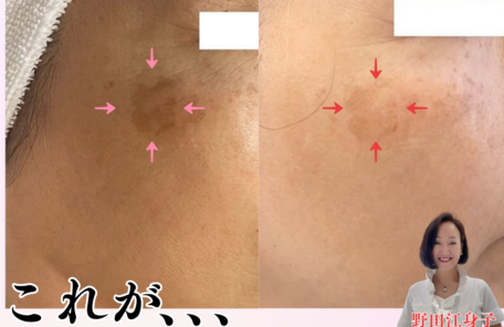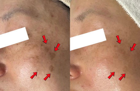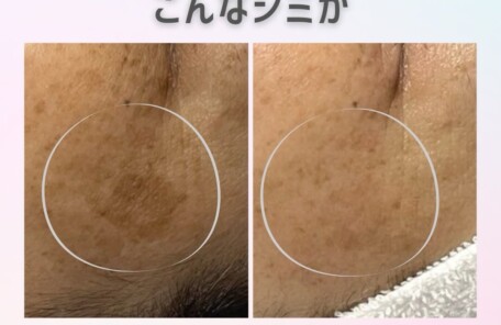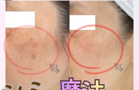 痛くないシミケアコース 本当に痛くなくてビックリ!!シミケアしたところが黒く浮き上がってきます。施術後はお肌の写真を撮って経過を見ていただけます。シミケア後…